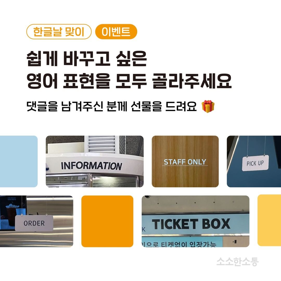한국은 모국어로 영어를 사용하지 않는 나라 중에서 영어 간판이 가장 많은 나라 중 하나입니다. 한영 병기표기를 사용하지 않고, 영어만으로 써놓은 안내판이 많습니다. 이는 외국인들에게는 편리한 서비스이지만, 한국인으로서 이를 보면 내심 실소가 나오기도 합니다.