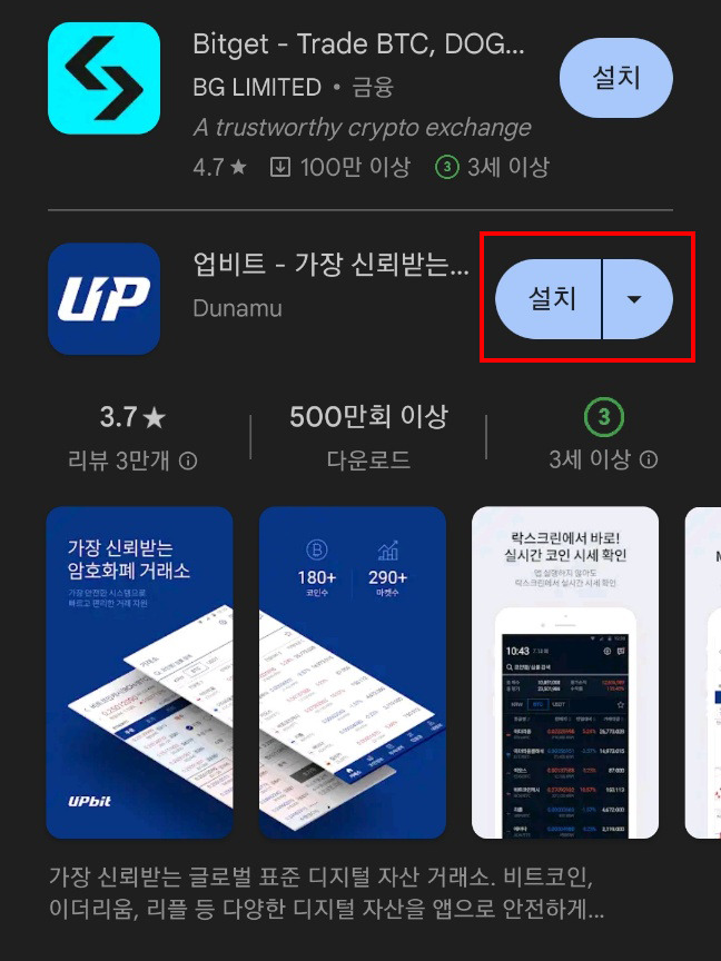 - ‘업비트’ 검색 → 설치